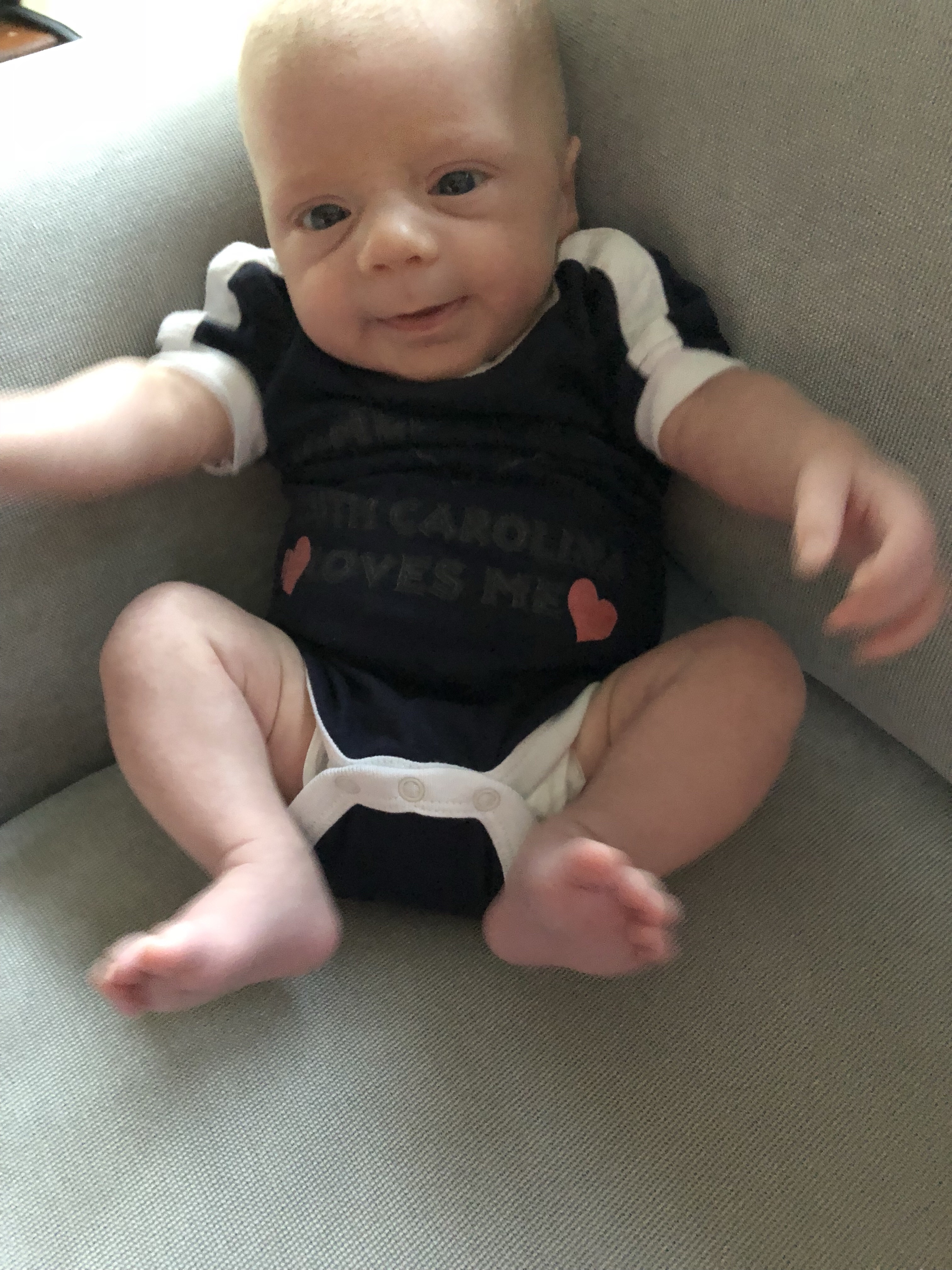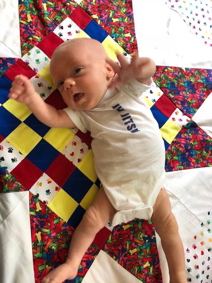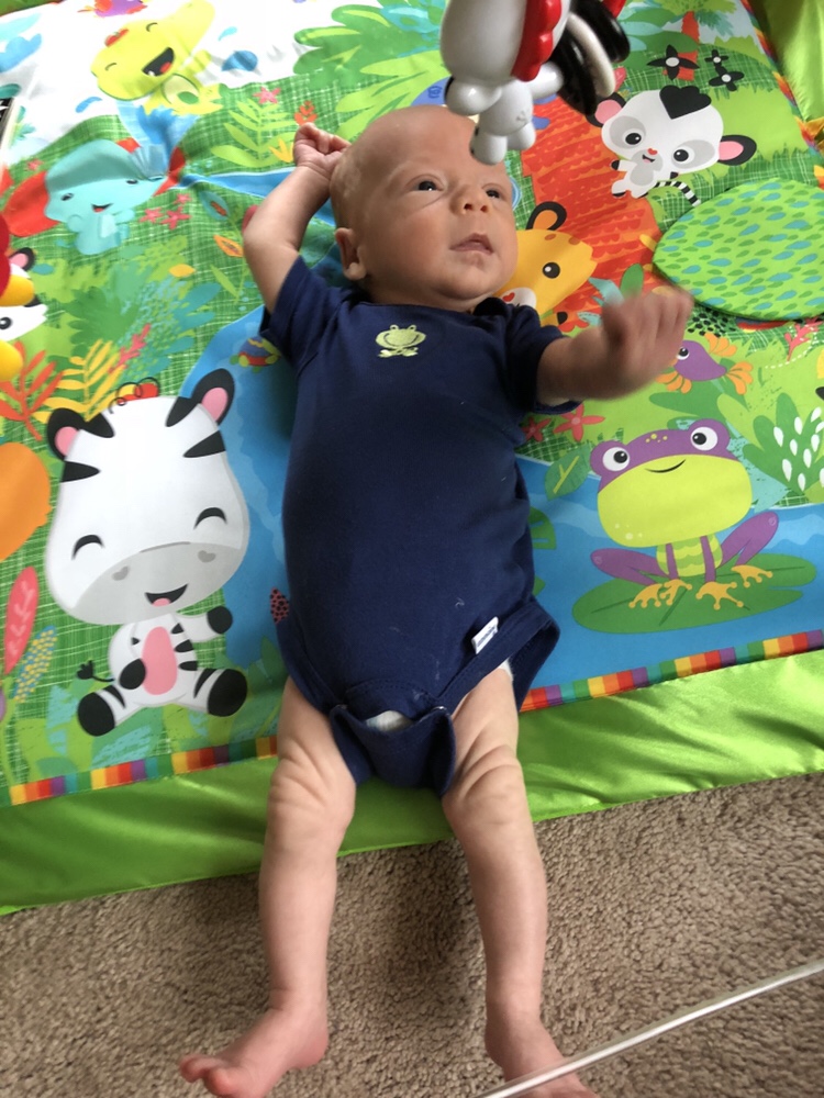 As babies tend to do, Landon is growing like a weed! He doubled his birth weight, weighing in at 9 pounds, 2 ounces at his two-month appointment.