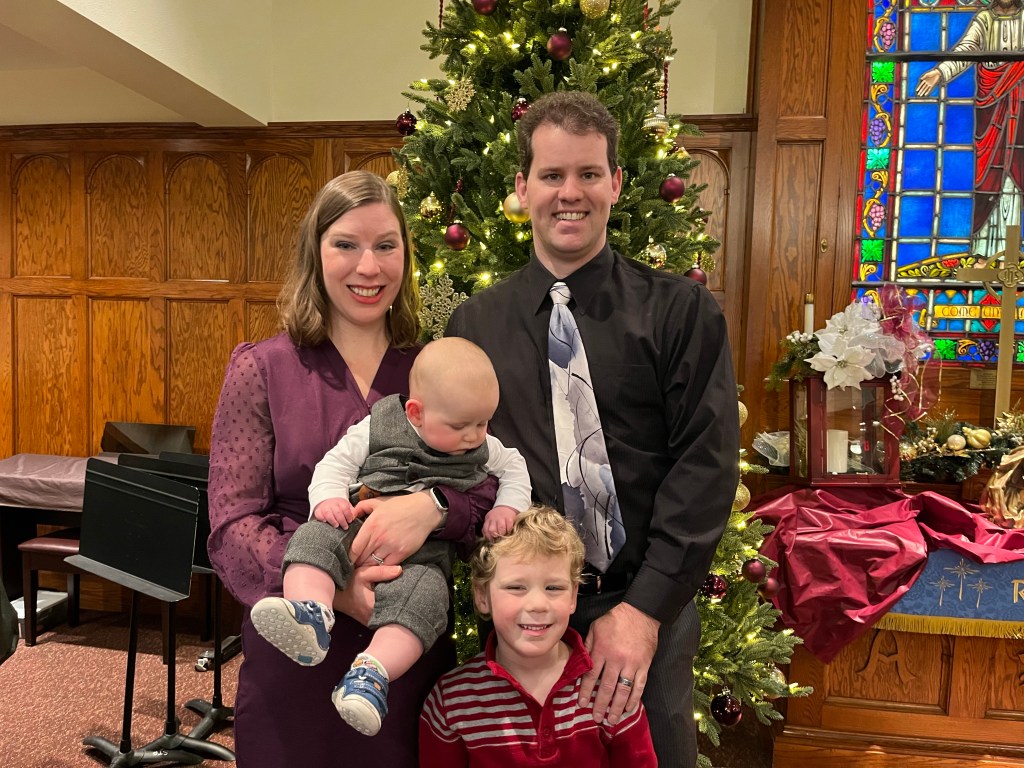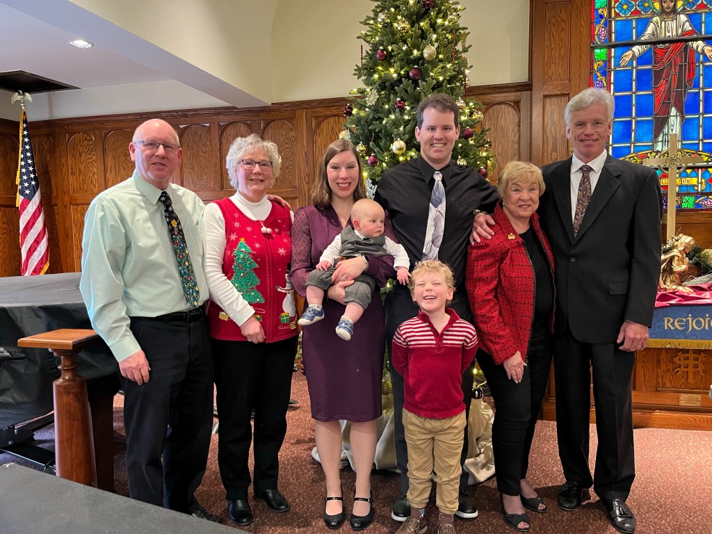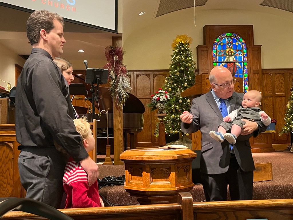 Bryce was baptized on Dec. 11 against the backdrop of Christmas decor and amid family, friends and the St. Peter’s church congregation. He was a champ during the process despite being hungry and very, very tired. Landon even actively participated in naming Bryce; when the pastor asked us to name this child Brian and I each thought the other would respond. During the long pause, Landon shouted, “Bryce!” Then we fully named Bryce Forrest Cowin.